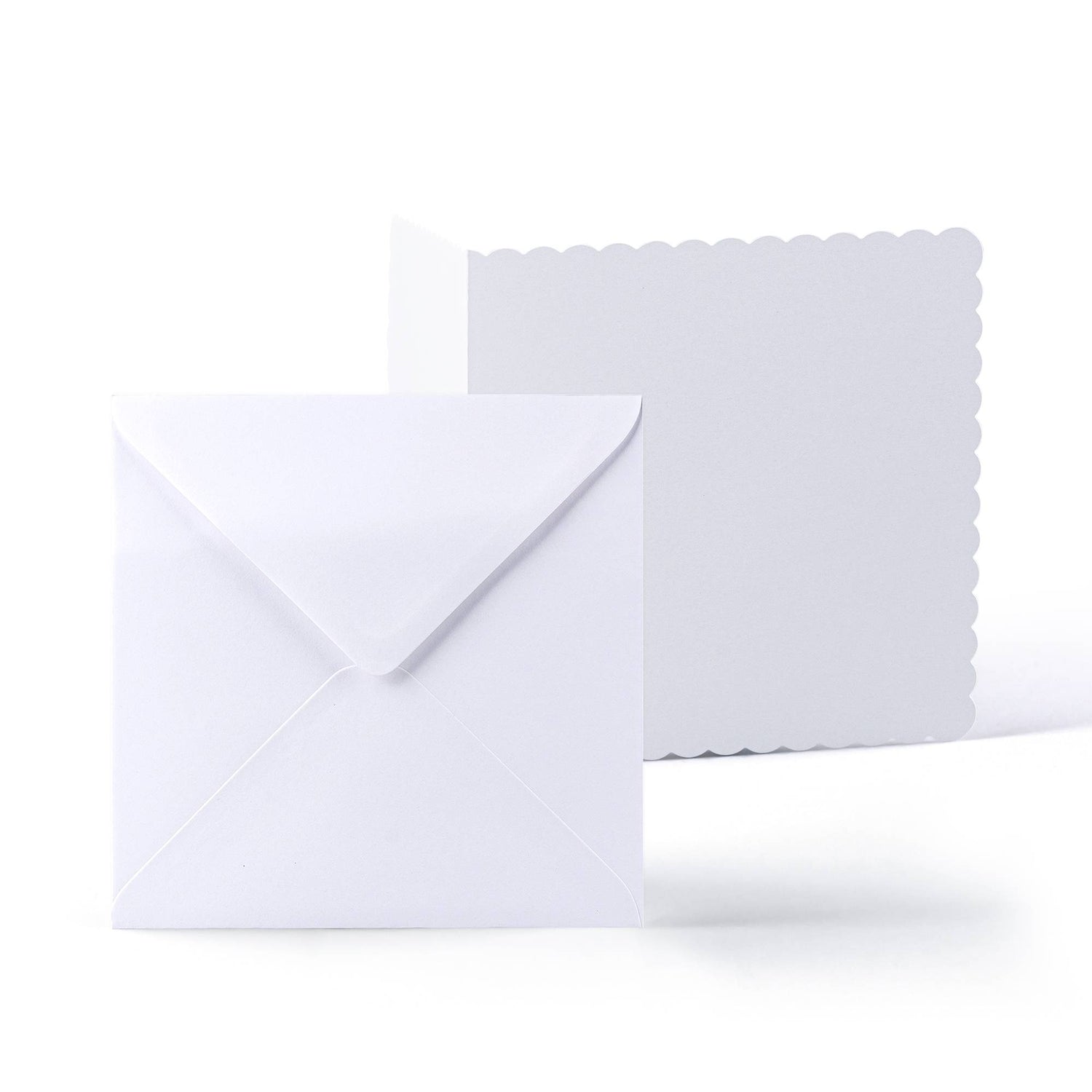 Zestaw białych kartek i kopert z falowanym brzegiem